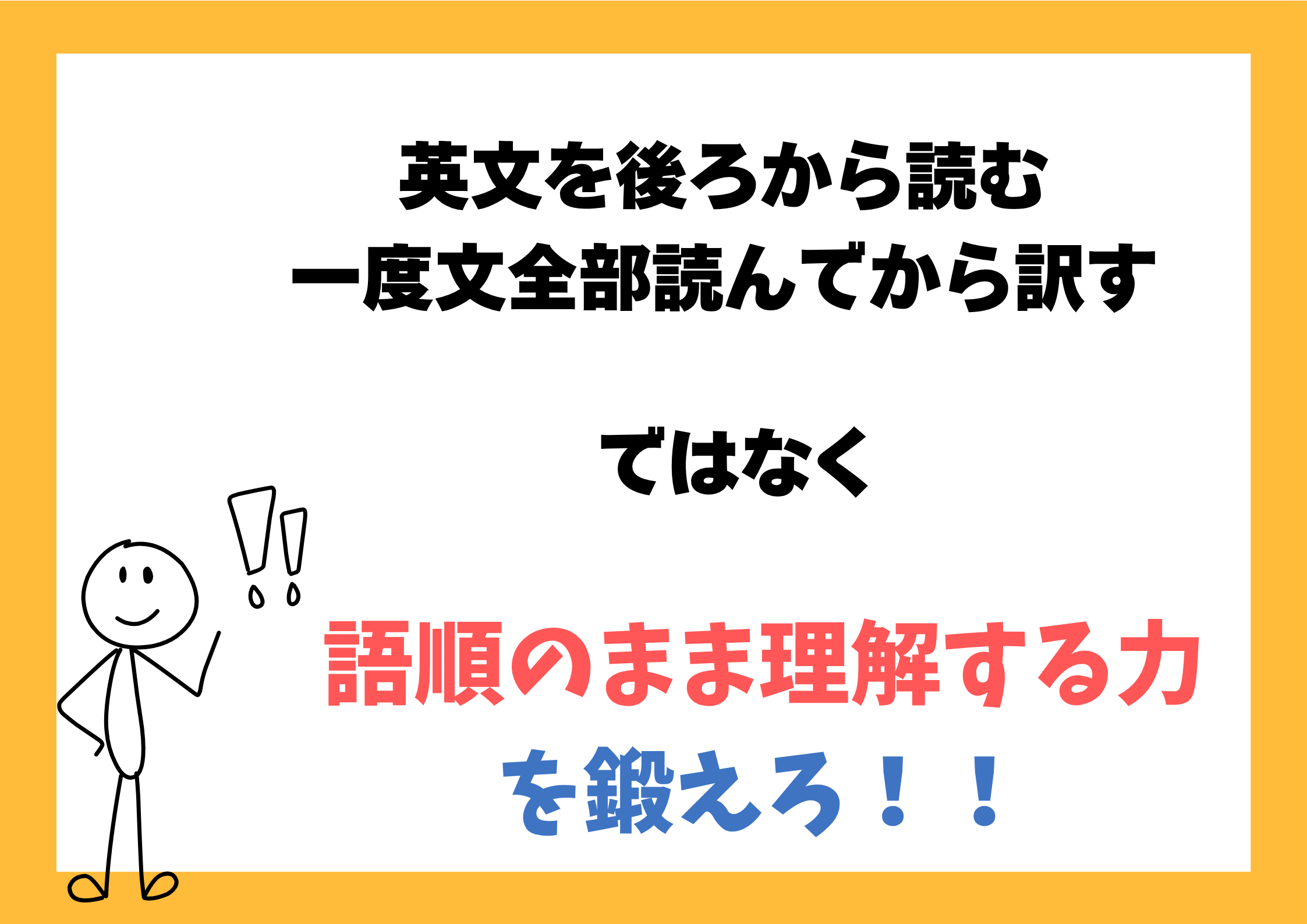 こういう人がやるべきなのは、「読むこと」。でも、ただ読むんじゃなくて、語順どおりに、止まらずに、できるだけ速く読む。